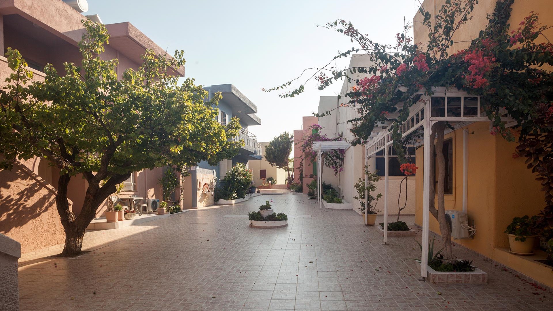 Because of its general location Evina rooms & Suites gives its guests the possibility to reach all destinations very easy and quickly. The D. E. K. K. (International Exhibition Center of Crete) is only 500 m away, due to which the hotel remains open during the winter time. In the same distance you will find the biggest Aquarium of the Balkans. Moreover, the hotel is situated only a few meters away from the Village Center, where there are some cafes, bars, tavernas, restaurants and shops. If you are looking for more fun, Chersonissos, which is a town with numerous bars and discos, is only 10 minutes drive from the hotel. There is regular bus service to Chersonissos, Agios Nikolaos and Heraklion.